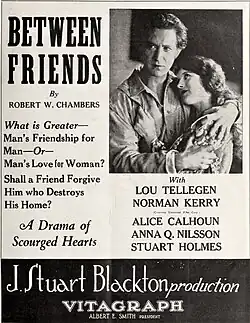 Between Friends is a 1924 American silent melodrama film based on the eponymous 1914 novel by Robert W. Chambers. The film was directed by J. Stuart Blackton and produced by Albert E. Smith. It stars Lou Tellegen, Anna Q. Nilsson, and Norman Kerry. The feature was distributed by Vitagraph Studios, which was founded by Blackton and Smith in 1897 in Brooklyn, New York. The film is lost.[1]