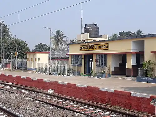 1. ^ Roy, Joydeep. "Bhedia Railway Station Map/Atlas ER/Eastern Zone – Railway Enquiry". India Rail Info. Retrieved 14 October 2019.