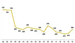 At the turn of the century, having spent the best part of the last two decades competing only against teams within South Asia, Bhutan made their first foray into international football at a continental level, competing in the qualification rounds for the 2000 AFC Asian Cup. This tournament was to be one of the lowest points in the history of the admittedly hastily assembled national team.[17] An opening 3–0 loss to Nepal was perhaps not surprising, with Bhutan never having gained any form of positive result against their Himalayan neighbours, and at this point in time having scored against them only once in the ANFA Cup back in 1982.[18] Four days later they faced Kuwait and were beaten 20–0.[18] Seven of the ten Kuwaiti outfield players got their names on the scoresheet that day, including Bashar Abdullah who scored eight and Jassem Al-Houwaidi who scored five. Bhutan were seriously hampered in this game by their years in the footballing wilderness, but did not help themselves in the match conceding four penalties in total for what were described as "rugby-like challenges" and having two players sent off.[19] This defeat was a world record international defeat, though this most undesirable of records was only held for fourteen months when Australia beat Tonga 22–0.[20] As of 2016 this remains their worst ever result. Further heavy defeats were to follow, an 8–0 loss to Turkmenistan was followed by an 11–2 defeat to Yemen. Following this qualifying tournament, having been established in 1983, the Bhutan Football Federation was admitted as the 204th[15] member of FIFA.[21]