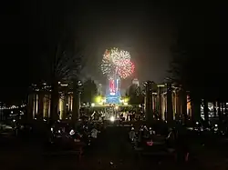 Since its opening, Bicentennial Capitol Mall State Park has been the site of numerous events, including festivals, concerts, and community gatherings, and has come to be the most visited state park in Tennessee. Since 2016, the park has been the site of the Nashville's Big Bash New Year's Eve celebration which includes concerts and the ceremonious dropping of a musical note, owing to the city's music industry and nickname of "Music City". Over 200,000 thousand people attend the event each year.[35][36] Since 2021, Nashville Pride has taken place at the park. Over the years the Nashville Oktoberfest festival has moved into the park. Originally held completely in the Germantown neighborhood northeast of the park, as the celebration has grown, portions of the festival have moved into the park. Parts of the park are routinely rented for music festivals, the longest running of which is the Deep Tropics Festival, which has taken place in August of each year since 2019.[37]