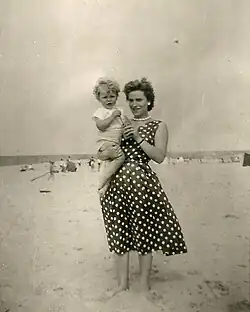 Davies with her mother Simone Clybouw on the beach in Zeebrugge, 1957
