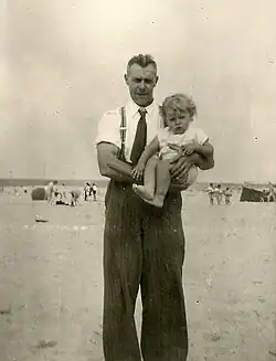 Davies around 2-3 years old with her grandfather Maurice Clybouw in Zeebrugge