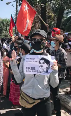 In 2021, she did a protest with the artists against military coup.