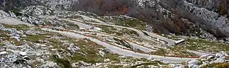 The Biokovo Road (Croatian: Biokovska cesta) is, at 1,762 m.a.s.l., the highest road in Croatia. It is a one-lane access road that branches out from the D512 Makarska-Vrgorac state road at 365 m.a.s.l. and ends at Sveti Jure, the highest peak of Biokovo and the third highest peak in Croatia.[1][2][3]
