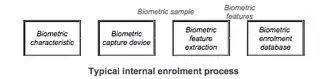 The procedure is called enrollment and comprises the creation of an enrollment data record of the biometric data subject (the person to be enrolled) and its storage in a biometric enrollment database. The enrollment data record comprises one or multiple biometric references and arbitrary non-biometric data such as a name or a personnel number.