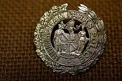 The parks of Birmingham were, at first, patrolled by Birmingham City Police. In the 1880s, the Parks Committee of the Corporation applied to Worcestershire Constabulary for additional officers to patrol Cannon Hill Park, because whilst the park was maintained by the Corporation, it was mainly used by ratepayers of Worcestershire.[1] In 1883, the Birmingham Corporation (Consolidation) Act 1883 (46 & 47 Vict. c. lxx) permitted the corporation to appoint park keepers as constables.[2] They were required to take the oath that a constable of the regular city police took under the Municipal Corporations Act 1882.[2] They then had the "powers, authorities and privileges" of such a constable within the corporation's parks, whether within the limits of the city or not.[2] In the late 1880s, reports in the Birmingham Daily Post show that both Cannon Hill Park and Calthorpe Park had become the location for sexual assaults on both adults and children,[3] and the Parks Committee was keen to have more police to patrol Cannon Hill Park.