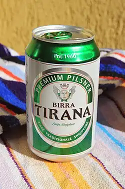 Birra Tirana (English: Tirana Beer) is a beer company based in Tirana, Albania. It is the largest beer producer and the largest selling beer in the country.[1] It is also exported and sold in Kosovo and the United States. The company is fabricated by Birra Malto Brewery.[2] It currently produces three different beer brands. Birra Tirana is sold both in bottles and cans of 0.33 lit and 0.5 lit and also in kegs 30 litres and 50 litres.
