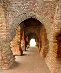 Bishnupur was ruled under the Gupta period by local Hindu kings who paid tribute to Samudra Gupta.[3][4] Following a long period of obscurity, where the land oscillated between being a minor independent principality and a vassal state. The land is also called Mallabhum after the Malla rulers of this place. The Malla rulers were Vaishnavites and built the famous terracotta temples during the 17th and 18th centuries at this place. The legends of Bipodtarini Devi are associated with the Malla Kings of Bishnupur.[5]