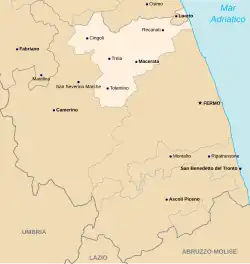 The Diocese of Macerata-Tolentino-Recanati-Cingoli-Treia (Latin: Dioecesis Maceratensis-Tolentina-Recinetensis-Cingulana-Treiensis) is a Latin diocese of the Catholic Church in Italy. It is a suffragan of the Archdiocese of Fermo.[1][2]