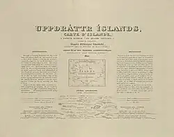 Title page of Uppdráttr Íslands. The map, attributed to Olsen, is mentioned in Jules Verne's A Journey to the Center of the Earth.[13]