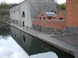 Lime working and processing was carried out on the site from medieval times. Evidence of quarries and underground remains, the canal, and preserved lime kilns are parts of a scheduled ancient monument which has features from the medieval, Industrial Revolution and 20th century.[9] Standing alongside canal arm are the lime kilns, built by the Earl of Dudley to process limestone quarried from Wren's Nest workings. The earliest of the three surviving kilns dates from the late 18th century.[10]