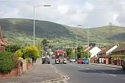Black Mountain is a large hill which overlooks the city of Belfast, Northern Ireland. With a height of 1,275 ft (389 m),[1] it towers over most of west Belfast and is part of the Belfast Hills. Its name is probably derived from the adjoining mountain called Divis (/ˈdɪvɪs/; from Irish Dubhais 'black ridge'), and they may have been seen as one mountain in the past.[2] Black Mountain transmitting station is on the summit.
