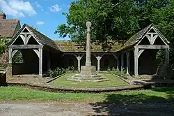 Designed by Herbert Baker, the Blackmoor War Memorial cloister, framed by timber, was added to the church grounds in 1920.[3] It is one of around 130 Grade II* listed war memorials in England.