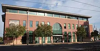 The Blair-Caldwell African American Research Library is a branch of the Denver Public Library in Denver, Colorado, in the United States that opened in 2003 and serves the Five Points neighborhood. It is also a research library with collections focusing on the history of African Americans in Denver and the American West. As of 2017, the library sees 135,000 visitors a year, including school groups visiting the third-floor museum. The library’s mission is to “collect and preserve the history and culture of African Americans in Colorado and throughout the Rocky Mountain West.”[1]