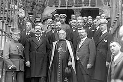 The conflict between the party theorist Vázquez de Mella and the claimant Don Jaime produced major breakup within Carlism and in the late 1910s membership in the Tudela círculo was decimated by defections, either to the Mellistas or to Sindicato Agrícola Tudelano.[48] Morte remained totally loyal to his king.[49] As Navarrese leaders like Cesareo Sanz Escartín opted for the rebels, he emerged as one of the most prestigious regional politicians who stood by Don Jaime, even though for the time being the Navarrese party leadership went to Ignacio Baleztena.[50] In late 1919 Morte travelled to Biarritz to take part in a grand party assembly known as Magna Junta de Biarritz, supposed to point the way forward.[51] Some time afterwards he ascended to Jefe Regional de Navarra y Rioja, the position he would hold until death;[52] leadership in the key Carlist region in Spain elevated Morte into the very top elite of Carlist politicians of the time. Some sources claim that when the nationwide party leader Luis Hernando de Larramendi resigned in mid-1921, Don Jaime was very seriously pondering upon asking Morte to replace him. However, the claimant suspected that because of age and poor health Morte would not accept the nomination;[53] eventually the post went to José Selva Mergelina, marqués de Villores.[54]