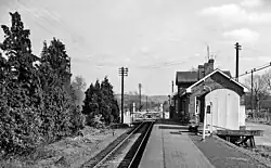 A single siding equipped with a 2-ton yard crane handled goods traffic which consisted of watercress and English elm boles for trawling nets made locally in Longwick.[7] Figures from 1933 show that 2,853 long tons (2,899 t) of goods were sent from the station, whilst 402 long tons (408 t) tons of goods were received. In the same period 5,338 passenger tickets were issued and 6,529 parcels forwarded.[9]