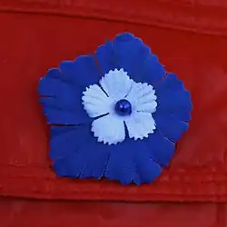 In France, the bleuet de France is the symbol of memory for, and solidarity with, veterans, victims of war, widows, and orphans, similar to the Commonwealth remembrance poppy. The sale of "bleuet de France" badges on 11 November and 8 May is used to finance charitable works for those causes.[1]