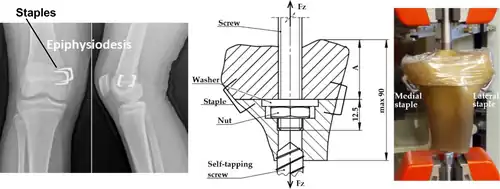 - ^ a b Frydrýšek, Karel; Čepica, Daniel; Halo, Tomáš; Skoupý, Ondřej; Pleva, Leopold; Madeja, Roman; Pometlová, Jana; Losertová, Monika; Koutecký, Jan; Michal, Pavel; Havlas, Vojtěch (January 2022). "Biomechanical Analysis of Staples for Epiphysiodesis". Applied Sciences. 12 (2): 614. doi:10.3390/app12020614. hdl:10084/146236. ISSN 2076-3417.