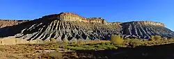 Blue Valley is part of the Fremont River drainage extending from just east of the Caineville Reef to Hanksville, Utah. This stretch of the Fremont River is located approximately 15 miles east of Capitol Reef National Park. It is called Blue Valley because of the blue color of the Mancos Shale that is the dominant geological formation of the Fremont river valley at that elevation. Blue Valley is the location of several ghost towns including Caineville, Giles, and Elephant. First settled by Americans (Mormon pioneers) during the late 1880s as farming and ranching communities, the settlements were all abandoned in 1910 due to flooding of the Fremont River which washed away many farms, destroyed the irrigation systems, and lowered the elevation of the river.