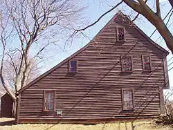 The house as first built had two rooms per floor, with a central chimney. On the ground floor it has a parlor and hall, with two bedrooms above, and an attic above the bedrooms. By 1696 a characteristic lean-to was added at the rear for the kitchen and milkroom giving it the appearance of a saltbox. This lean-to was completely rebuilt in 1731, reusing some of the timbers of the old one.[4] There are five fireplaces in the house, one in each of the original rooms, and another in the kitchen.