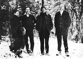 After leaving the Forest Service in 1928, Marshall worked to complete his studies for a PhD in plant physiology at Johns Hopkins University in Baltimore, Maryland. The following year he made his first trip to Alaska, visiting the upper Koyukuk River and the central Brooks Range, and preparing for an extended stay for study.[13] The scientific objective of the trip was to study tree growth at the northern timberline near the Arctic Divide.[34] For his 15-month sojourn in the small town of Wiseman, Alaska, Marshall rented a one-room cabin next to the only roadhouse in the village. He furnished it with books, records, a phonograph player, and a writing desk.[35] He placed the desk so that he could sit by the cabin's single window and admire the view of the Koyukuk River and the range of steep, snow-covered mountains in the background. His travels engendered in him a great love for the central Brooks Range in the Alaskan wilderness. Marshall was one of the first to explore much of the range, especially the headwaters of the North fork of the Koyukuk River,[36] where he bestowed the name "Gates of the Arctic" on a pair of mountains, Boreal Mountain (6,375 ft) and Frigid Crags (5,501 ft).[37][38]