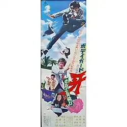 Bodyguard Kiba 2[2][3] (ボディガード牙 必殺三角飛び), also known as Bodyguard Kiba 2, is a 1973 Japanese martial arts film starring Sonny Chiba. It is the sequel to the earlier 1973 film Bodyguard Kiba based on an action manga by Ikki Kajiwara.[4][5] Etsuko Shihomi makes her screen acting debut, replacing actress Yayoi Watanabe in the role of Naoto Kiba's sister Maki. Shihomi had previously worked as a stunt double for Watanabe in the earlier film Bodyguard Kiba. The movie is also considered a break-through for Masashi Ishibashi,[6] who would be asked by Sonny Chiba to play a major role in the 1974 movie The Street Fighter.[7]