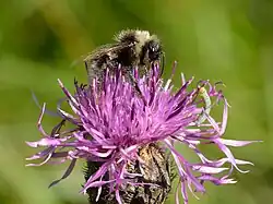 Favourite food sources are flowering plants such as thistles; the queen also visits white deadnettle and vetches, while the male feeds on bramble, knapweed, lavender, and honeysuckles.[4]