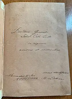 An inscription written by Father Lüthen in a bound edition of Der Missionär (1883)