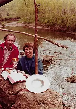Bonnie with her husband on the set of Lutheran Vespers.