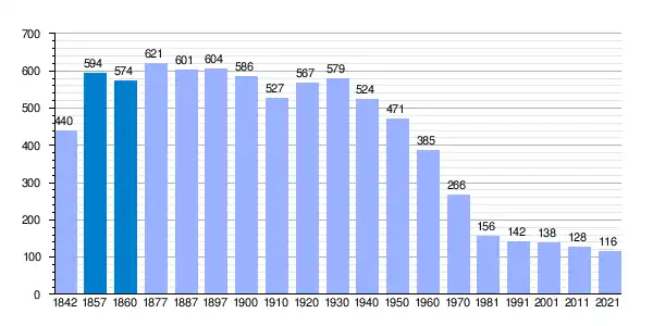 | demographic vertical bar chart of Bordón[3] between 1842 and 2021 |