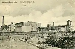 Borden Manufacturing Company, also known as Goldsboro Cotton Mills and Wayne Cotton Mills, is a historic factory complex located at Goldsboro, Wayne County, North Carolina. The complex includes the Goldsboro Cotton Mills (1892), Goldsboro Smokestack (1905), Goldsboro Boiler Room (c. 1940), Borden-Goldsboro Pedestrian Bridge (c. 1940), Borden Manufacturing Company (1900), Borden Water Tank (c. 1930), Borden Auto Garage (c. 1915), Borden Reservoir (c. 1900), Borden Reservoir Pump House (c. 1920), Borden Railroad Siding Tracks (c. 1900), Borden Conditioning Room (c. 1915), and Borden Storage Building (c. 1920). The Goldsboro Cotton Mills is a two-story, 16 bays long, gable-front, brick building with Italianate style detailing. It features a central three-story square tower, three bays in width.[2]