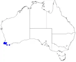 This boronia grows near swamps, along streams, along roads and in seasonally wet places between Busselton, Augusta, Nannup and Walpole.[2][3]