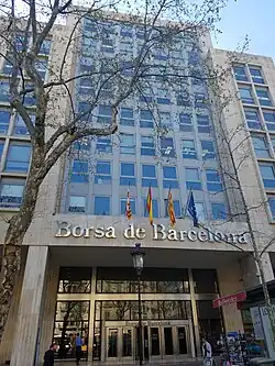 The Stock Exchange of Barcelona (abbreviation, BCN) is a stock exchange located in Barcelona, and is one of the main exchanges in Spain. It is located in the Eixample District, on Passeig de Gràcia.[1]
