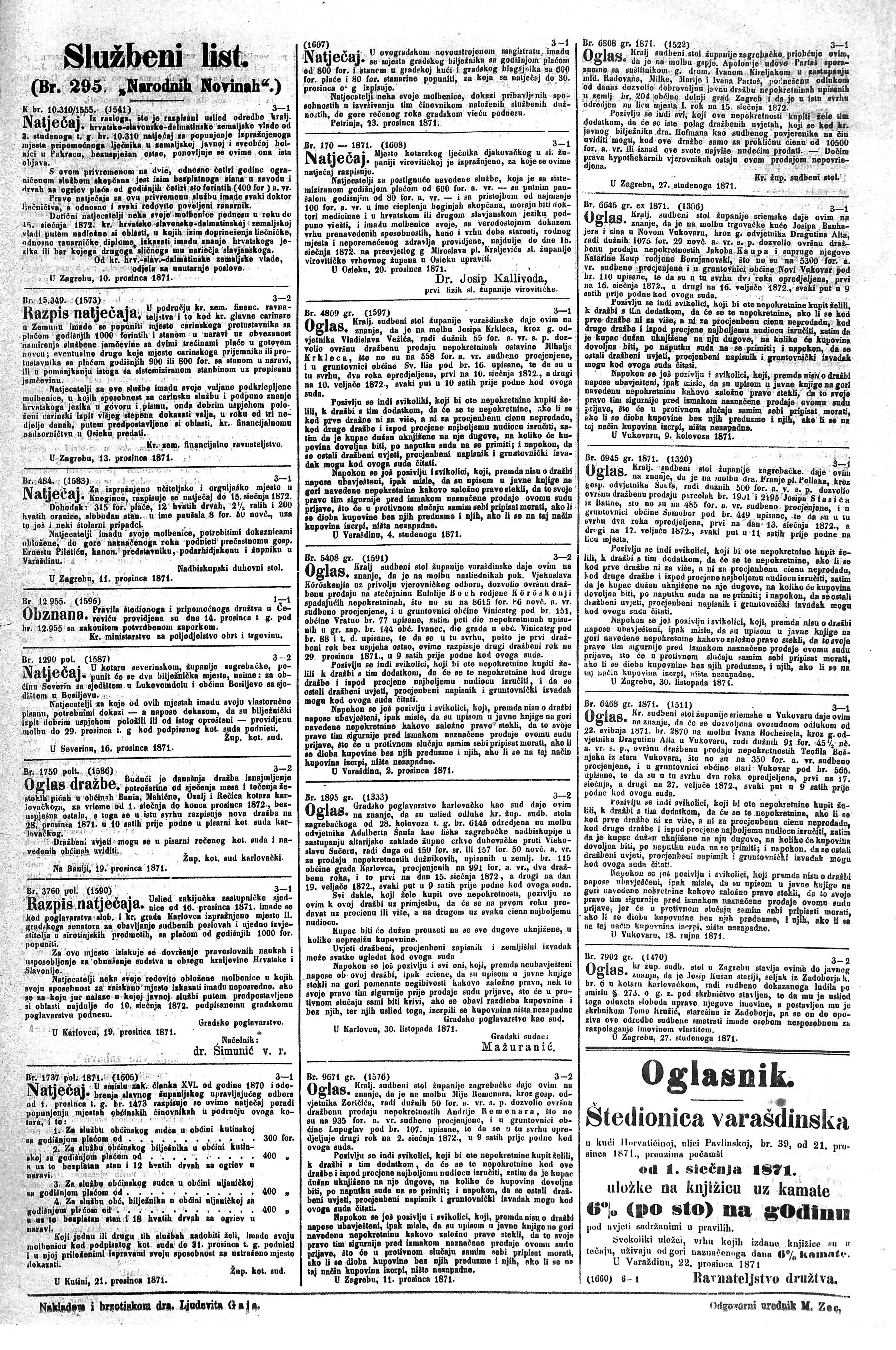 - ^ Lopašić, Radoslav (28 July 1870). "Oglas jeftimbe". Narodne novine (in Croatian). p. 4. ISSN 0027-7932.