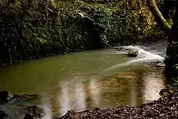 The River Bourne runs through a shallow valley, and frequent flushing of the woodland on the banks with water rich in nutrients creates a rich ground flora. There is also an area of swamp around a fish pond.[3]