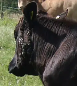 BPV is highly prevalent, with around 50% of cattle being estimated to bear lesions in the UK.[6] Cutaneous warts are most common in younger animals (under 2 years) and usually spontaneously regress due to the animal's immune response without significant scarring. The duration of infection is very variable (from one month to over a year) and recurrence is possible.[7]