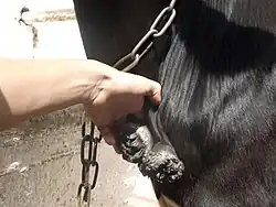 Warts caused by the Xipapillomavirus group have a cauliflower-like appearance and can attain the size of a fist; most common on the head, neck and shoulders, they may also occur in other locations.[7] Cutaneous fibropapillomas caused by Deltapapillomavirus group have a nodular appearance.[7] Although unsightly, most skin warts rarely cause problems except in show animals. However, large warts may bleed, potentially leading to secondary infections, and florid warts of the teat can cause mastitis and interfere with suckling and milking.[3] Fibropapillomas can be troublesome when present in the genital area, causing pain and sometimes loss of reproductive functions as well as interfering with calving.[3][7] Chronically immunosuppressed animals may develop extensive papillomatosis in the upper gastrointestinal tract, which can cause difficulties with eating and breathing.[3]