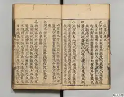 There are two different editions of the Bowuzhi, respectively dating from Song dynasty (960-1279) and Ming dynasty (1368-1644) copies. Both divide the text into 10 chapters (卷) and comprise nearly the same material, but they differ in organizing the sequence of the 329 items and the presence of 38 topic headings in the Ming copy.[20] Both editions include the two early Bowuzhi commentaries; 20 comments by Zhou Riyong 周日用 (fl. 12th century) and 7 by an unknown author surnamed Lu, Lushi 盧氏.[21]
