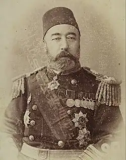 Bozcaadalı Hasan Hüsnü Pasha (1832–1903) was an Ottoman admiral, who participated in the Russo-Turkish War (1877–78).[1] In 1880 he became the Minister of the Ottoman Navy (Bahriye Nazırı).[1]