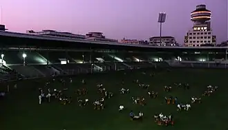 The ground hosted its first international tennis fixture in 1963, a Davis Cup tie where India lost to the United States.[119][120][121] Brabourne next hosted a Davis Cup match 43 years later in April 2006, an Asia-Oceania second round Group I tennis match where India defeated Pakistan.[122] An ATP Tour tournament, the Kingfisher Airlines Tennis Open, was held at the CCI tennis courts next to the ground in 2006 and 2007.[123][124] A football exhibition game was held at the ground in 1955 when national champion Bombay played the visiting Soviet Union team.[125] When Brabourne went out of favour for cricket matches in the 1970s, it held dog races and Rovers Cup football matches.[126]