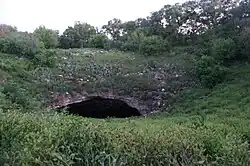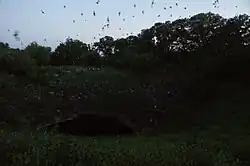 Bracken Cave is found near the town and is notable for housing the largest collection of Mexican free-tailed bats in the world, numbering 20 million in habitation during spring migration. As a result, the cave also holds the record for the largest known concentration of mammals in the world.[6][7][8] These bats have ventured to the cave for 10,000 years, helping the local agrarian economy by controlling the insect population.[5]