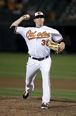 Brach had a solid year in his first season with the Orioles, as he appeared in 46 regular season games with a 3.18 ERA. He struck out 54 batters, having a 7.8 K/9 ratio. Brach recorded his first ever win in the MLB Playoffs on October 3, 2014, against the Detroit Tigers.[15] In 2015, Brach appeared in 62 games out of the bullpen, throwing 7913 innings, pitching to a 2.72 ERA and a 5–3 record. He held opponents to a .203 average and had 10.1 K/9.