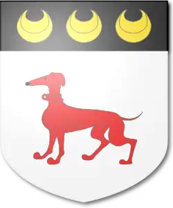 ArmsArgent, a Greyhound passant Gules, on a Chief Sable three Crescents Or. Crest: An Arm in Armour embowed the hand grasping a Scimitar, all proper. Motto: VIRTUTE ET NON VI (By virtue not by force)