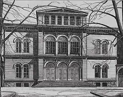 It was founded in 1842 and gave its first public appearance on 1 November that year at the opening of the Frankfurter Stadttheater (designed by Karl Friedrich Schinkel and built by Emil Flaminius at 22 Wilhelmsplatz), performing Albert Lortzing's Zar und Zimmermann. In 1871 the Philharmonischer Verein was founded, organizing three concerts a year as well as choral concerts at the Singakademie, before dissolving itself in 1895.