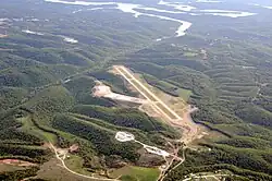 Funded via a federal grant of $16 million, Branson West is a general aviation airport designed for private and charter aircraft.[4] The airport was built on 200 acres (0.81 km2) donated by The Conco Companies of Springfield, with an additional 40 acres (160,000 m2) acquired by the city for runway protection zones. Another 450 acres (1.8 km2) donated by Kay Renfro will be used for future development, and 200 acres (0.81 km2) donated by city treasurer Martin Eastwood will serve as a conservation buffer zone.[5]