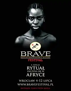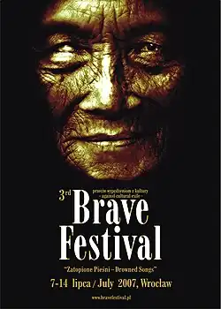Brave Festival – Against Cultural Exile is an annual Polish music festival launched in 2005 by Song of the Goat Theatre Association.[1] It takes place in Wrocław, as well as in other cities in Lower Silesia. Since inception, artists from all over the world have been invited to present their musical/cultural traditions. The festival is intended as an opportunity for attendees to speak about where they come from, their values, their traditions and their spirituality. It aims to save and protect forgotten, abandoned and forlorn cultures.[2] Brave Festival also has a project called Brave Kids, which aims is to introduce, integrate and start a collaboration of artistic groups of children from different continents. Grzegorz Bral is the director of Brave Festival.[3]