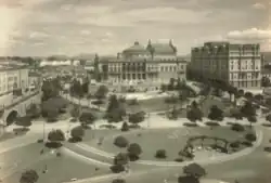 In 1897, José Roberto da Cunha Salles directed Ancoradouro de Pescadores na Baía de Guanabara, considered to be the first film in the history of Brazilian cinema.[24] In 1909, the Municipal Theater of Rio de Janeiro, one of the greatest symbols of the Belle Époque in the city, was inaugurated. Later, the entire Cinelândia complex, where the theater is located, was reconfigured with the installation of the Monroe Palace and several cinemas (Cine Odeon, Cineac Trianon, Parisiense, Império, Pathé, Capitólio, Rex, Rivoli, Vitória, Palácio, Metro Passeio, Plaza and Colonial).[25][26]