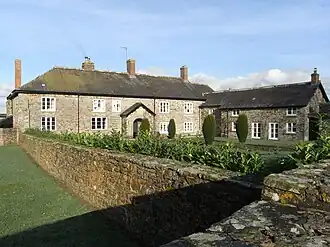 Brightley was the seat of a junior line of the prominent gentry family of Giffard of Halsbury in the parish of Parkham. The present house, named Brightley Barton which has long served as a large farmhouse, retains only one room of the former much larger mansion of the Giffards, but the mediaeval retaining walls of the former moat survive, which is a great rarity in North Devon.[3] A 17th-century stone sculpted heraldic escutcheon showing the Giffard arms is built into the stonework above the porch, said by Pevsner to date from the 15th century.[3] During the Civil War it served as quarters for 300 Royalist troops, at which time it was owned by Col. John Giffard (1602–1665). These troops are said to have crossed the River Taw over the weir.[4]