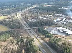 Highway 19 was first paved and designated in 1953 as an early part of the W.A.C. Bennett administration's massive province-wide highway improvement program. The original highway was built mostly built along the same route that Highway 19A follows today and was mostly only 2 lanes wide. It originally only ran from Nanaimo to Campbell River, but has since seen two major extensions. The highway was initially extended north to Kelsey Bay to meet B.C. Ferries' service to Prince Rupert in 1965 with its official opening being on the 14 September.[3] A sod turning ceremony had been held three years earlier in April 1962 and was officiated by Phil Gaglardi, the Highways Minister.[4] The cost of the extension was $50 million (equivalent to 437.65 million in 2022)[3]