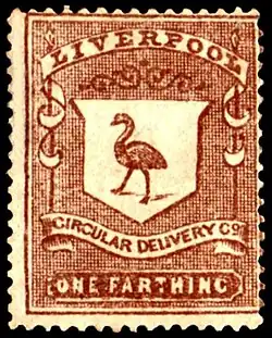 An 1867 one farthing stamp from the Liverpool Circular Delivery Company.